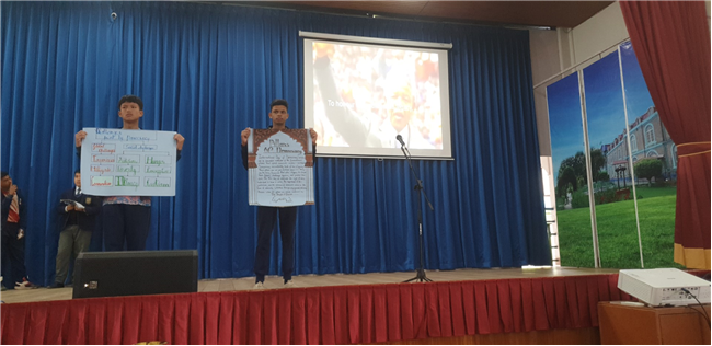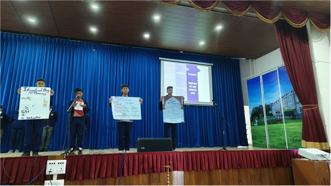 Class 8B conducted a special assembly on International Day of Democracy. Students shared speeches, quotes, and a poem that explained the importance of freedom, equality, and justice. The program encouraged everyone to be responsible citizens of our nation.