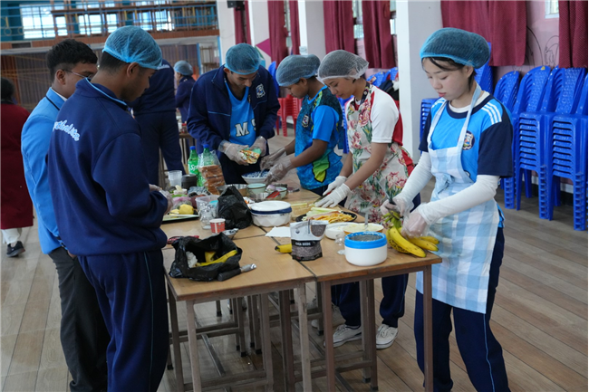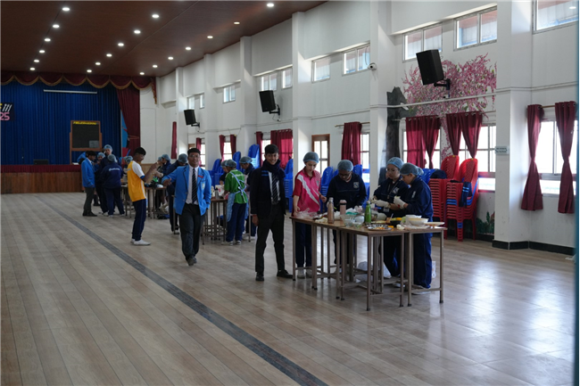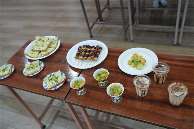 Our school organized a “Cooking Without Fire” event in the auditorium, where students prepared creative and healthy dishes without using any flame. The atmosphere was lively and filled with excitement as everyone showcased their innovative ideas. Three teachers and our principal were present as judges, carefully observing the dishes based on creativity, presentation, and taste. The event not only encouraged teamwork and imagination but also helped us learn the importance of safe and nutritious cooking. It was a memorable and enjoyable experience for all of us.